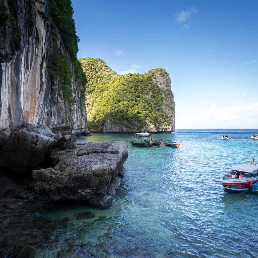 Discover the serene beauty of the Phi Phi Islands on a boat tour. Visit Maya Bay, Viking Cave, Monkey Beach, and Pileh Lagoon. Swim with blacktip reef sharks at Shark Point.